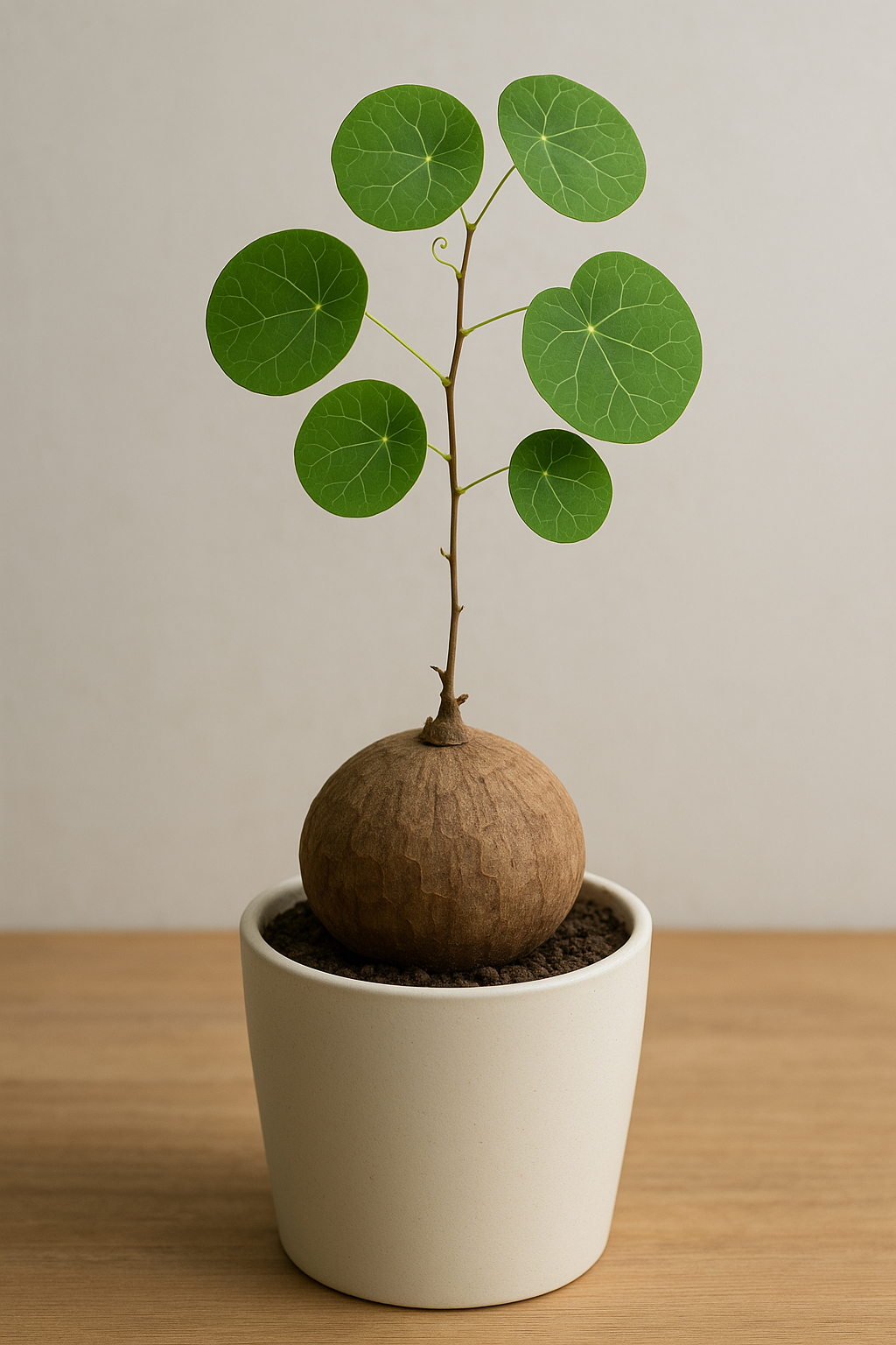 Stephania erecta is a collector’s dream - half sculpture, half living curiosity. In dormancy it’s a mysterious object, in growth it’s a miniature alien forest. Perfect for desks, shelves, or anyone who loves plants that don’t look like they belong on Earth.